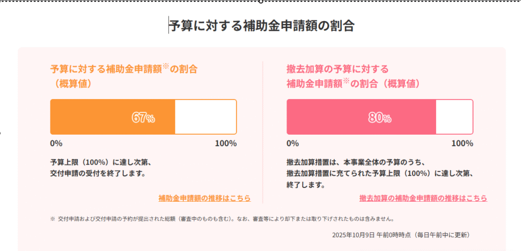 80%まで達しており、そろそろ予算が尽きる可能性も