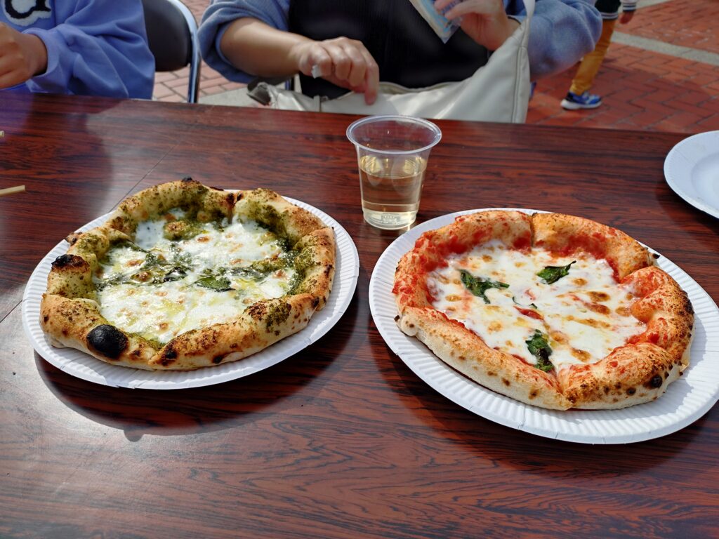 で、いつもこのイベントに出店してるピザ屋さんでマルゲリータとジェノベーゼを注文。
