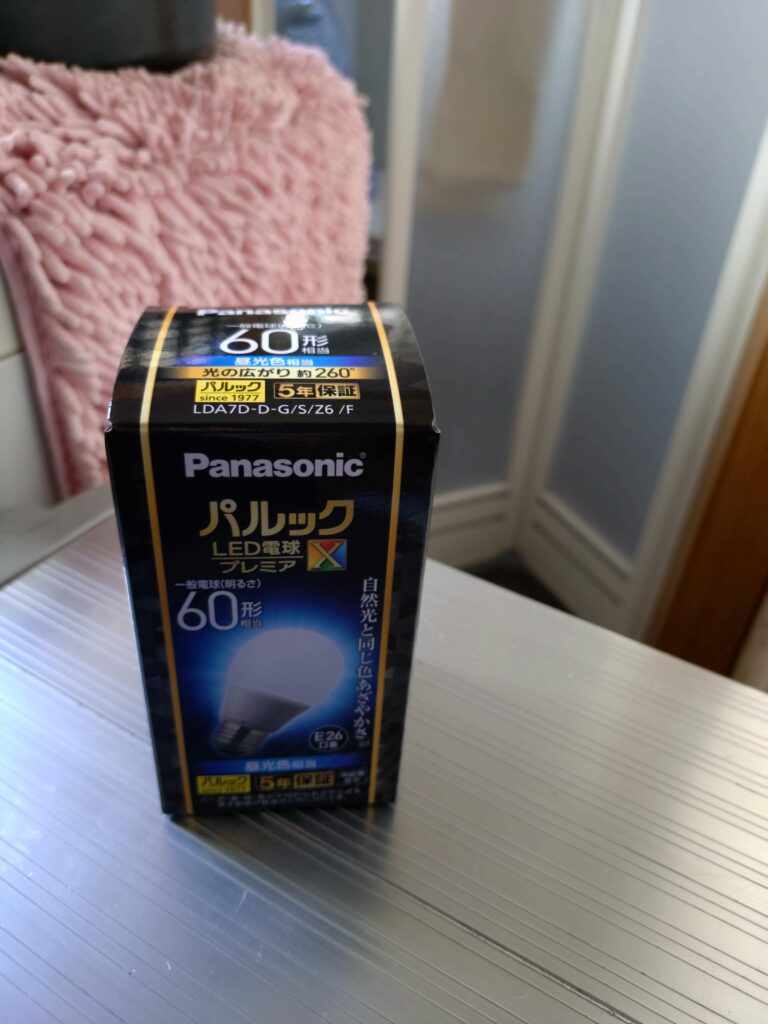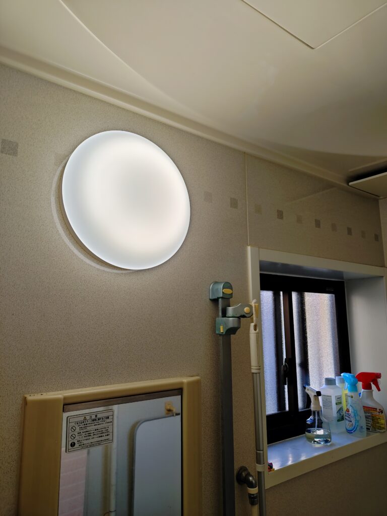 明るい照明が良いかと思い、脱衣所で取り付けた物を