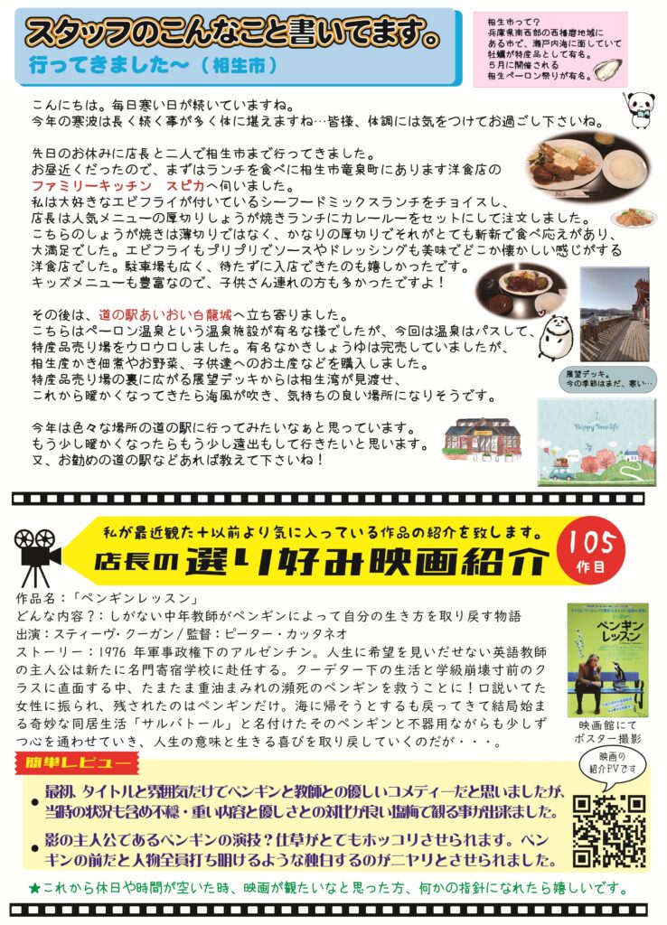 毎月地道に店舗近くの地域に配布させて頂いております。