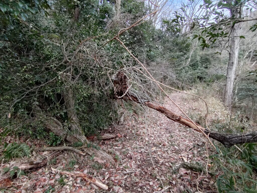 倒木が道を塞いでおりました。