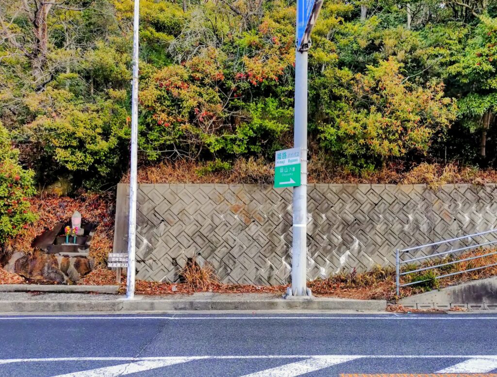 豆崎登山口の入口は国道2号線の道沿いにあります