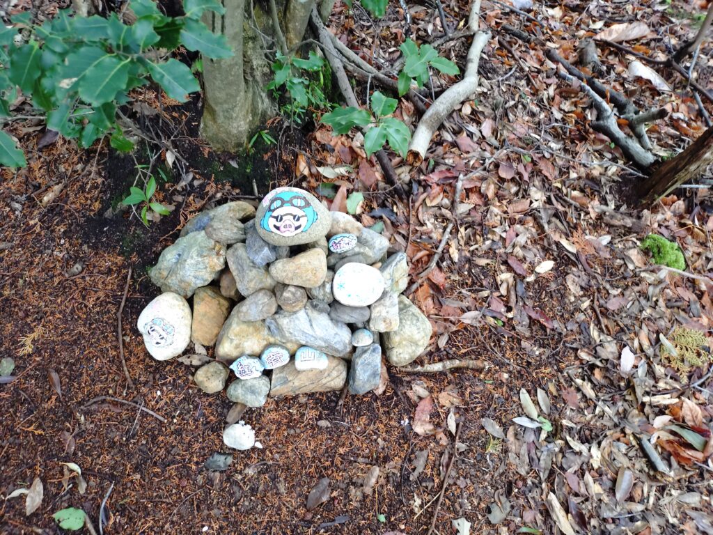 ポルコロッソのイラストを描いた石を積んでおりました。
