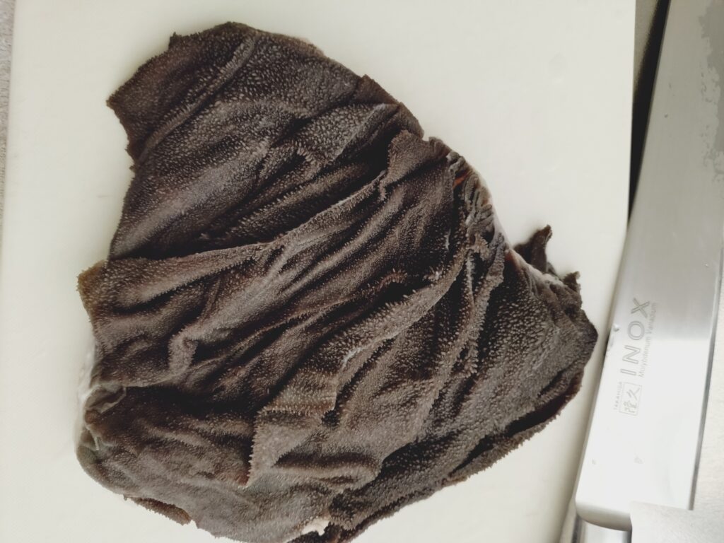 まずは「ツラミ」です。 牛の頬にあたる部分ですけど 購入先がよかったのか、油まで おいしくいただけました。次は「センマイ」です。 牛の胃の部分になります。 たまに、生センマイが焼肉店で提供されていると思いますが 塊でみる機会は少ないと思うので載せてみました。 赤身と違って、写真映えはしない気がしますが・・・。 やっぱり牛肉は最高だと思いました。